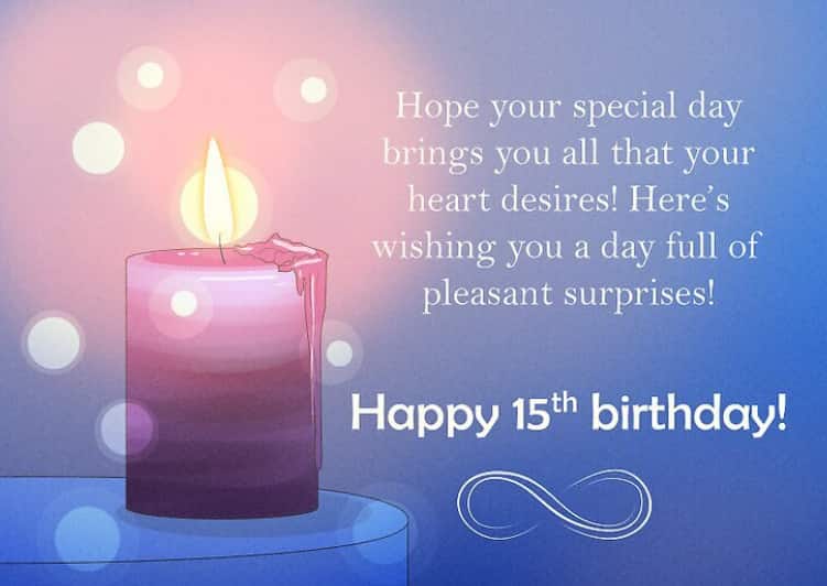 • Wishing you happiness, clarity, and steady personal growth throughout your 15th year.